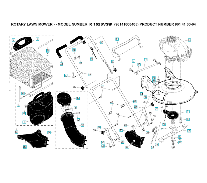 Ersatzteile für Husqvarna Rasenmäher private Nutzung R152SVSW ( 96141006405, 2010-01 ) GRIFF & BEDIENELEMENTE: