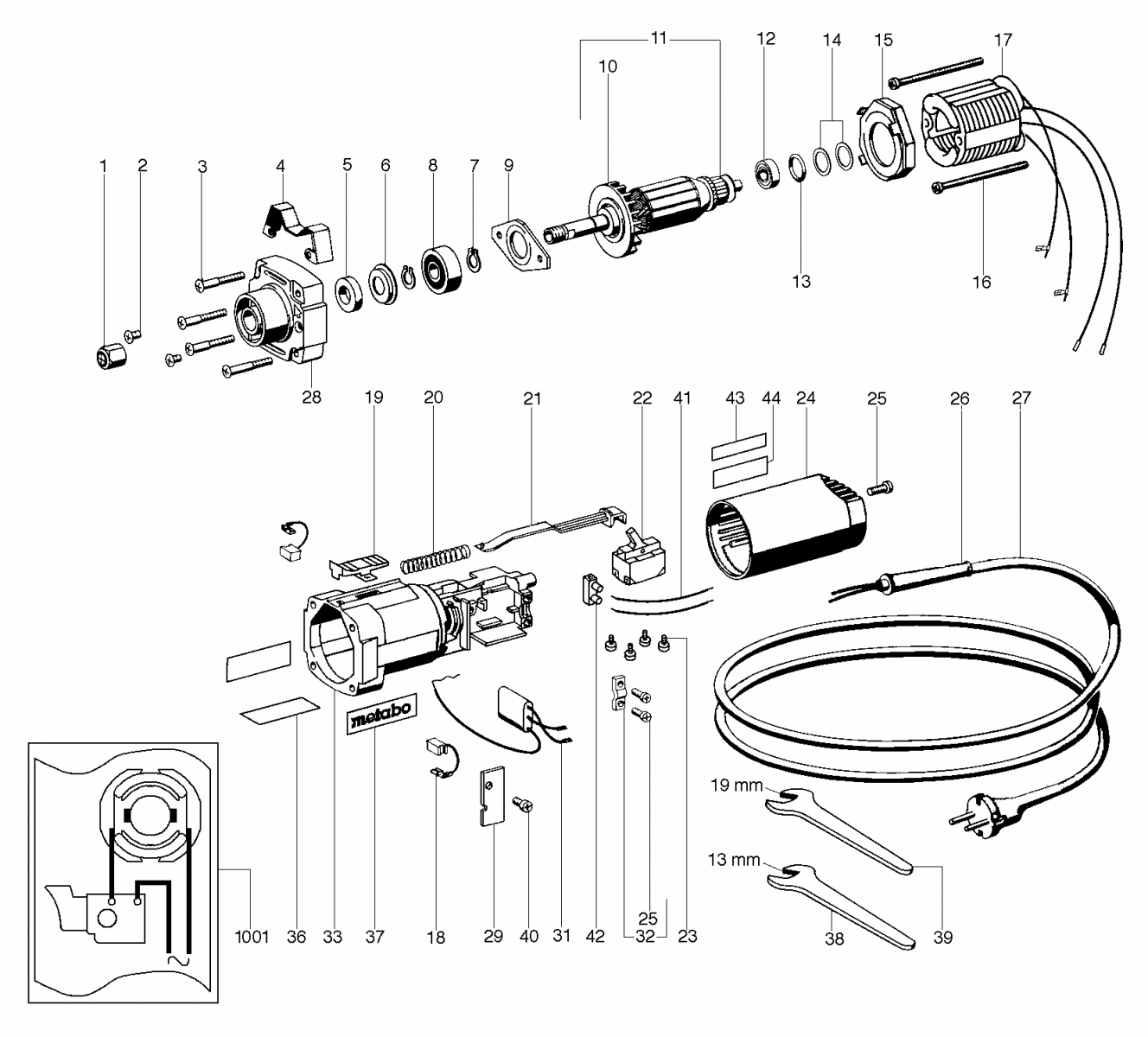 Zeichnung 1 Sollten Sie Fragen zu einem Ersatzteil von Metabo GS 6139 Geradschleifer 606139197 haben, können Sie uns gerne eine E-Mail (mit einem Foto vom Typenschild Ihres Gerätes) schreiben oder eine Ersatzteilanfrage stellen.