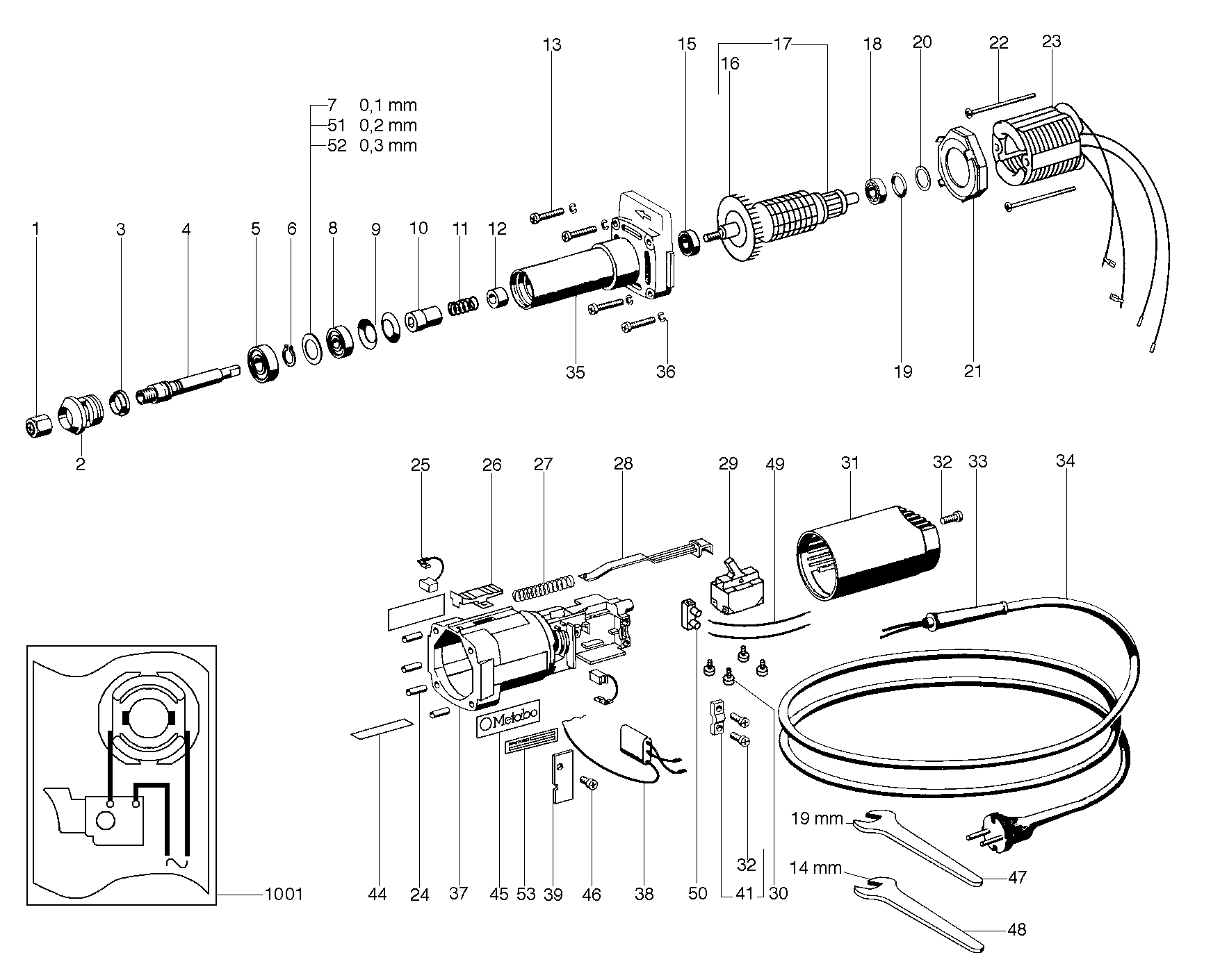 Zeichnung 1 Sollten Sie Fragen zu einem Ersatzteil von Metabo GS 6140 Geradschleifer 606140197 haben, können Sie uns gerne eine E-Mail (mit einem Foto vom Typenschild Ihres Gerätes) schreiben oder eine Ersatzteilanfrage stellen.