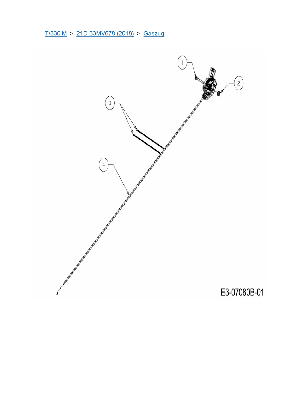 Ersatzteile für Motorhacke MTD T/330 M aus der Zeichnung Gaszug: