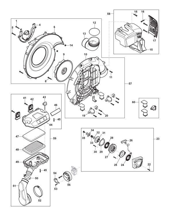 Gebläsegehäuse, Luftfilter, Set Kupplung (1)