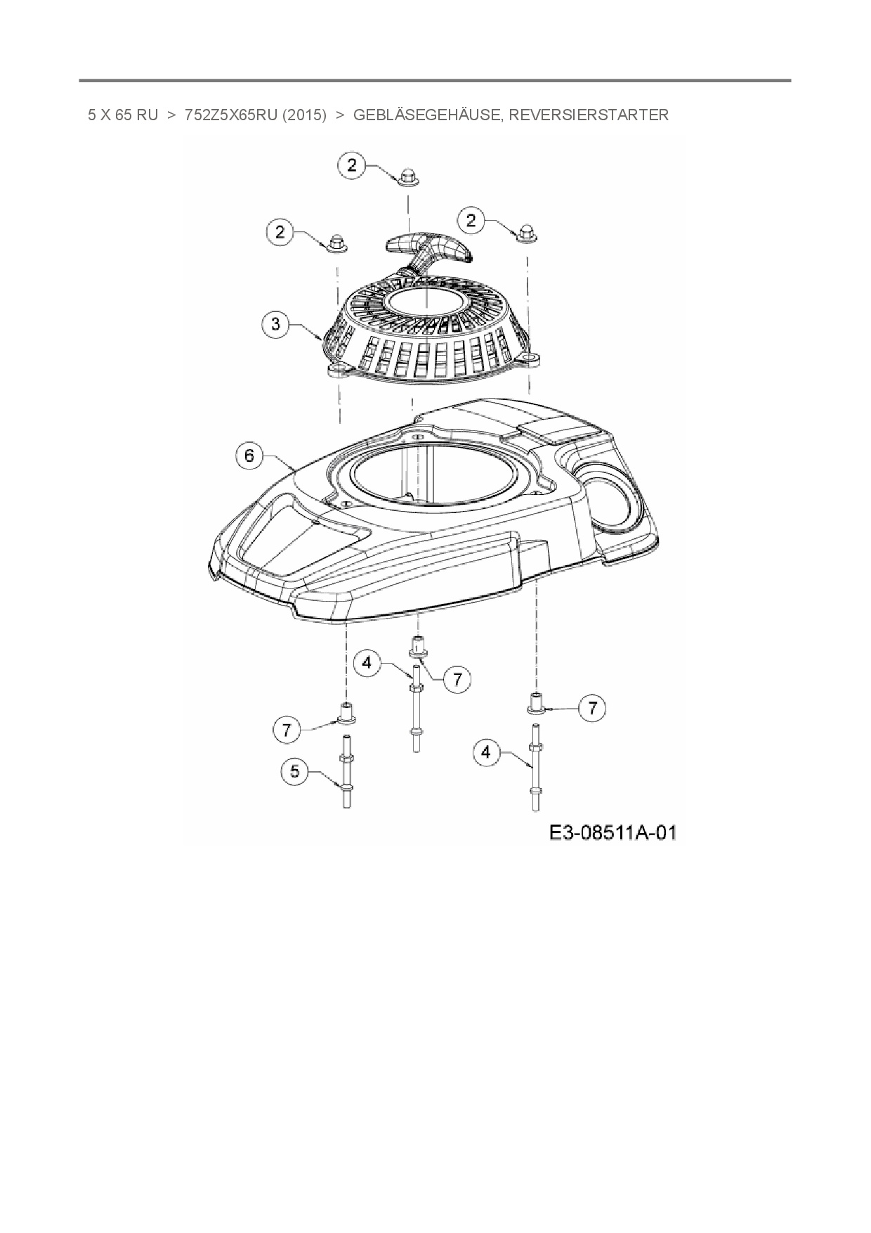Ersatzteile für Vertikal MTD-Motoren 5 X 65 RU aus der Zeichnung Gebläsegehäuse, Reversierstarter: