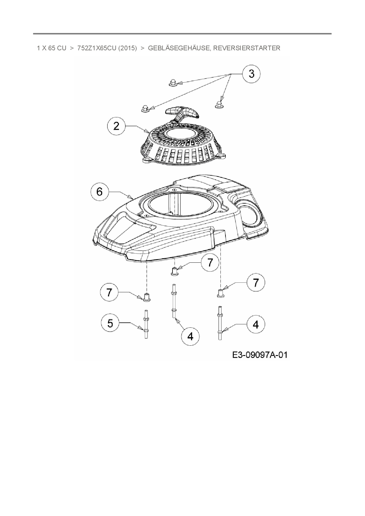 Ersatzteile für Vertikal MTD-Motoren 1 X 65 CU aus der Zeichnung Gebläsegehäuse, Reversierstarter: