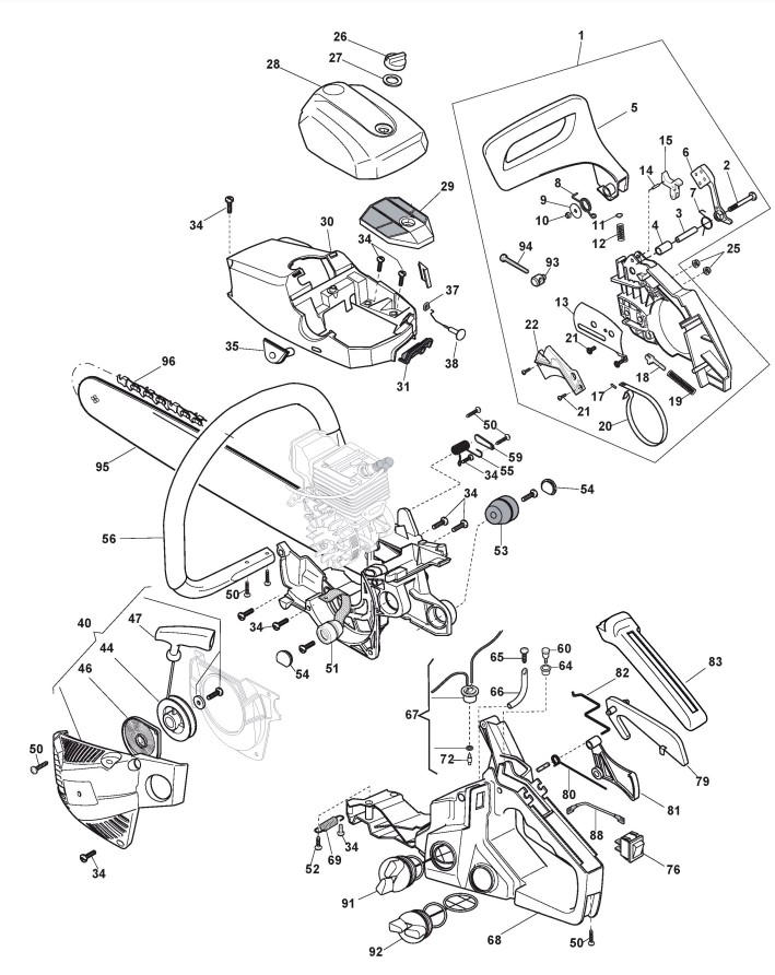 Hier finden Sie alle Ersatzteile von Castelgarden Benzin Kettensägen PS 3740 (228116013/ALP) ab 2014 aus der Zeichnung Gehäuse (1):