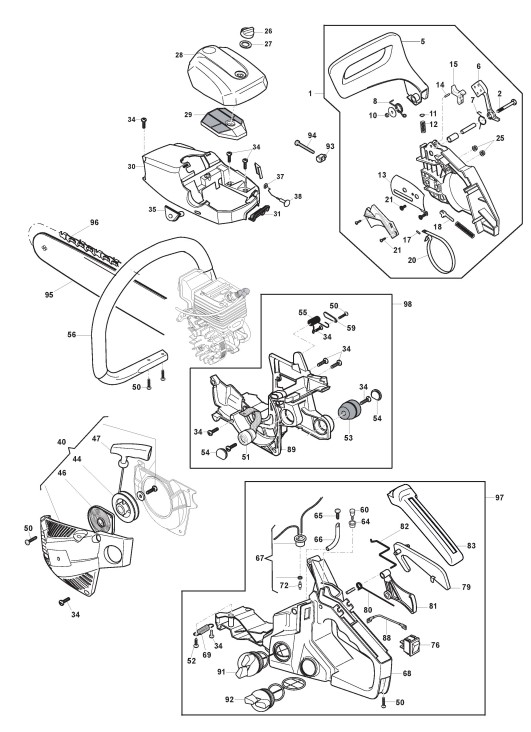 Hier finden Sie alle Ersatzteile von Castelgarden Benzin Kettensägen PS 3740 (228116013/ALP) ab 2018 aus der Zeichnung Gehäuse (1):