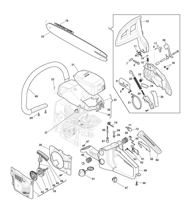 Hier finden Sie alle Ersatzteile von Castelgarden Benzin Kettensägen XC 250 (205020003/C19) ab 2019 aus der Zeichnung Gehäuse (1):