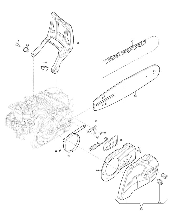 Zeichnungen von Alpina Kettensägen AC 46 mit Geräte Nr. 240461800/A17 ab Baujahr 2019