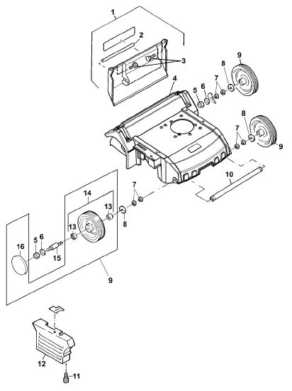 Zeichnung Sabo Vertikutierer Benzin Vertikutierer 38-BV EDV-NR.SA1424 Gehäuse, Achse, Räder: