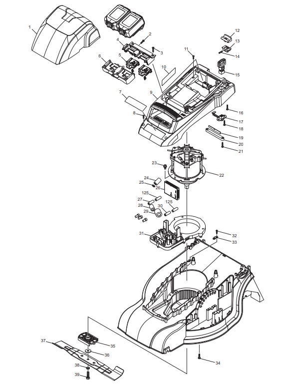Ersatzteile für Dolmar Rasenmäher Akku AM3738 Gehäuse, Batterie, Motor, Messer: