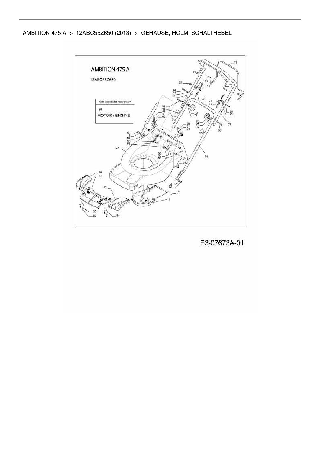 Download Ersatzteil-Zeichnung Wolf-Garten Ambition 475 A Zeichnung Gehäuse, Holm, Schalthebel (PDF-Format)