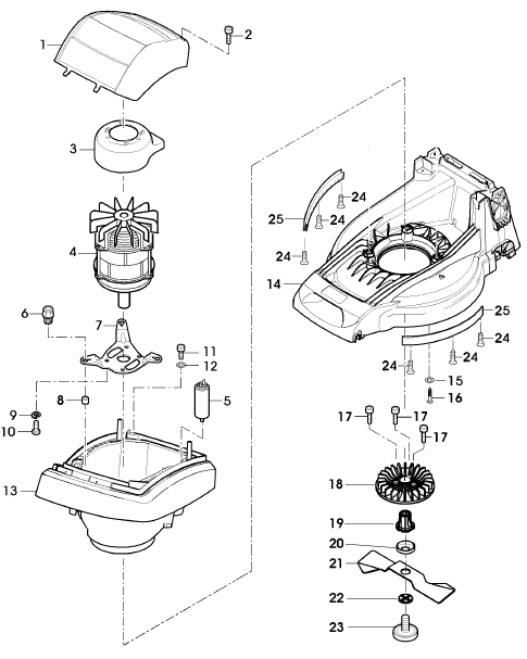 Gehäuse, Motor, Lüfter, Mähwerk
