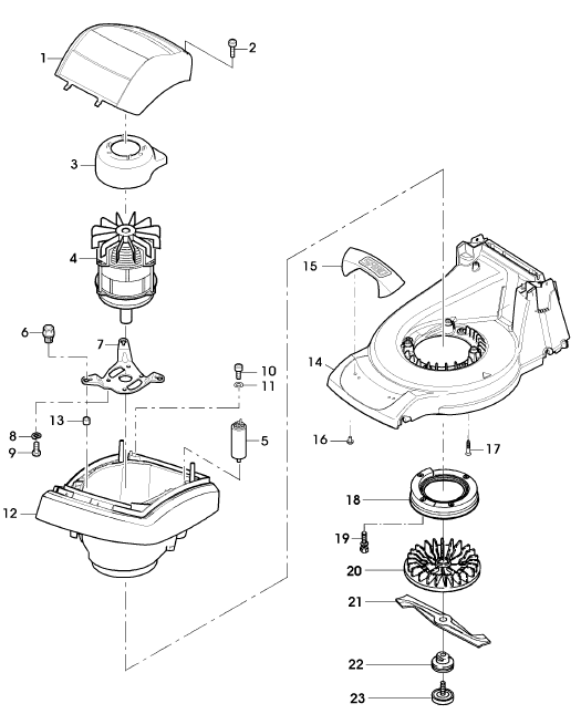 Zeichnung Sabo Rasenmäher Elektro-Rasenmäher 43-EL COMPACT EDV-NR.SA756 Gehäuse, Motor, Lüfter, Messerbalken: