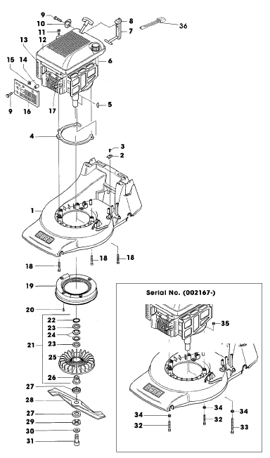 Zeichnung Sabo Rasenmäher Benzin-Rasenmäher 43-4 E TURBOSTAR EDV-NR. SA178 Gehäuse, Motor, Lüfter, Messerbalken: