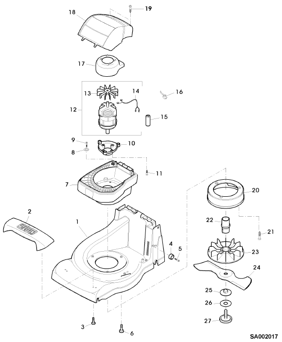 Zeichnung Sabo Rasenmäher Elektro-Rasenmäher 36-EL EDV-NR.SA112 Gehäuse, Motor, Messerbalken: