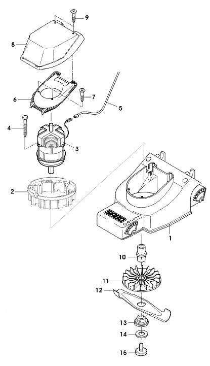 Zeichnung Sabo Rasenmäher Elektro-Rasenmäher 32-EL TURBOSTAR EDV-NR.SA750 Gehäuse, Motor, Messerbalken: