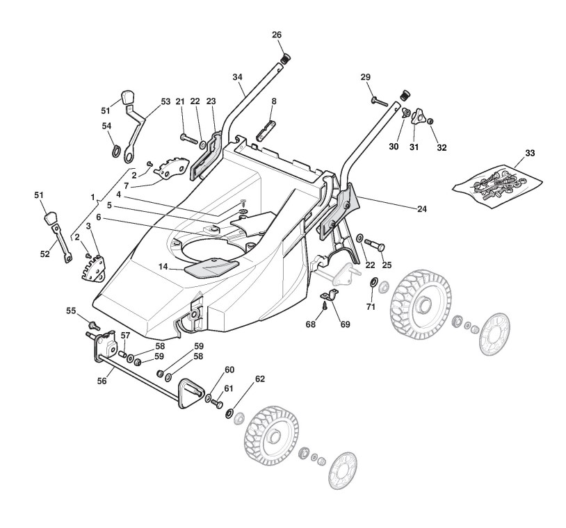 Hier finden Sie alle Ersatzteile von Castelgarden Benzinrasenmäher ab 2009 XP 50 BS (ID 296506023/FCK) aus der Zeichnung Gehäuse und Schnittverstellung: