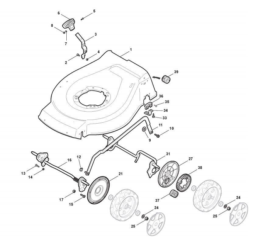 Hier finden Sie alle Ersatzteile von Castelgarden Benzinrasenmäher ab 2010 NTL 534 TR - H (ID 299532033/10) aus der Zeichnung Gehäuse und Schnittverstellung: