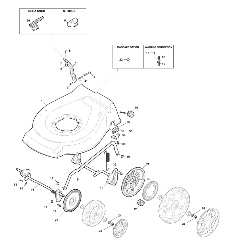 Hier finden Sie alle Ersatzteile von Castelgarden Benzinrasenmäher ab 2017 NTL 534 WTR/Q - B (ID 299536927/RFD) aus der Zeichnung Gehäuse und Schnittverstellung: