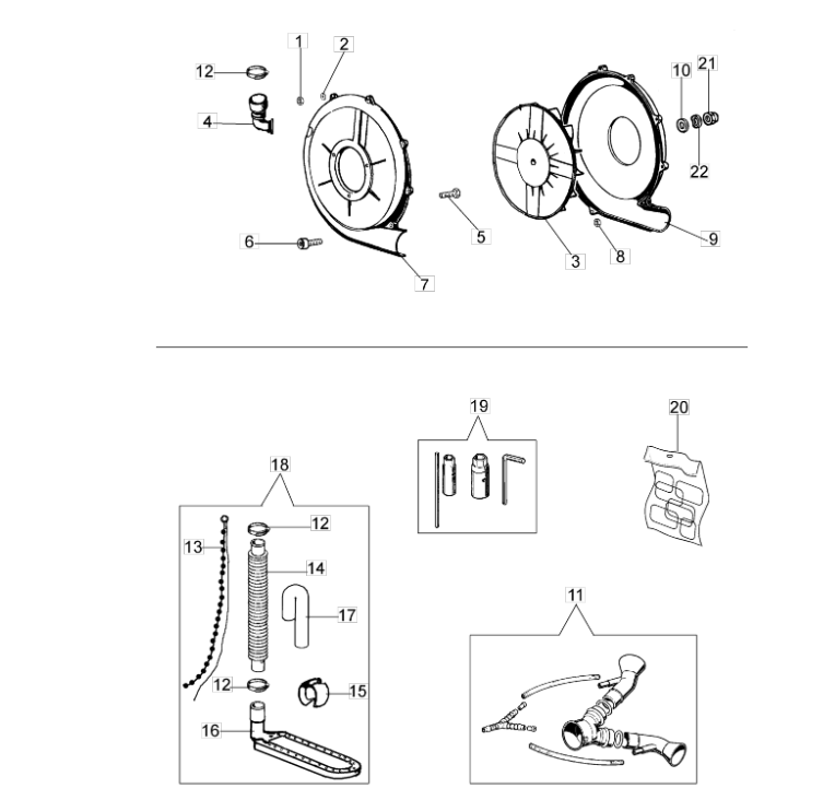 Hier finden Sie alle Ersatzteile für Oleo-Mac Sprühgeräte AM 190 aus der Zeichnung für Gehäuse und Zuberhörteile: