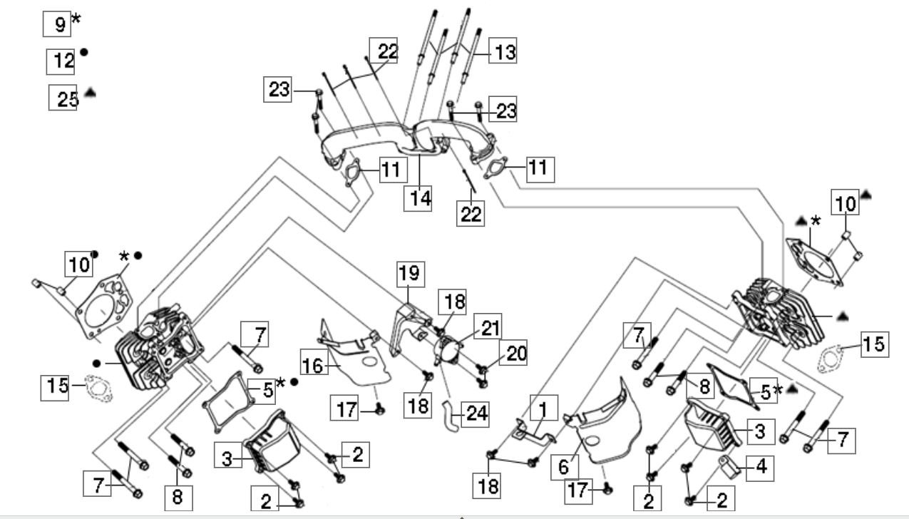 Zeichnung Oleo-Mac Rasentraktor OM 107 L/24 KH (K2400AVD V-Twin) Cat. 2016: