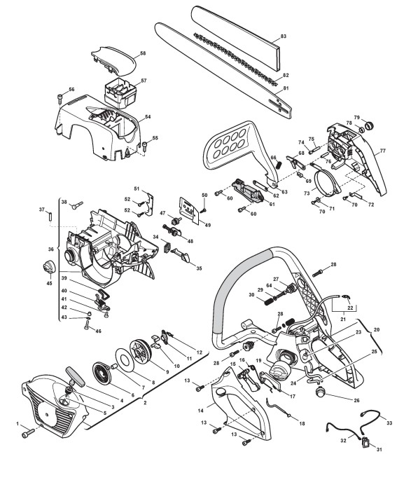 Zeichnungen von Stiga Kettensägen SP 480 mit Geräte Nr. 223413002/05 ab Baujahr 2005