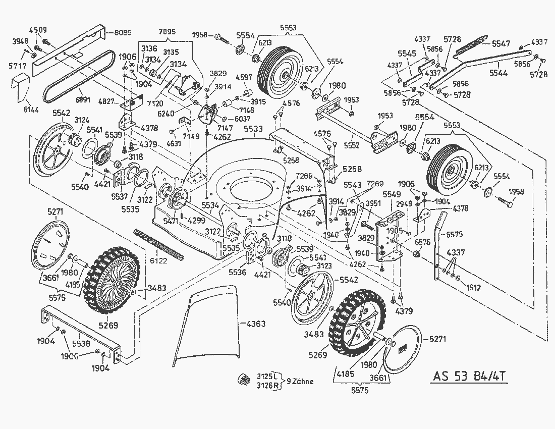 Zeichnung von AS-Motor Profi-Rasenmäher AS 53 4T und AS 53 B4/4T ab FNr. 014305101001:
