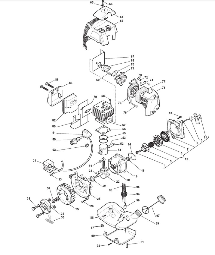 Zeichnungen von Alpina Rasentrimmer/Freischneider B 28 mit Geräte Nr. 280120000/12 ab Baujahr 2012