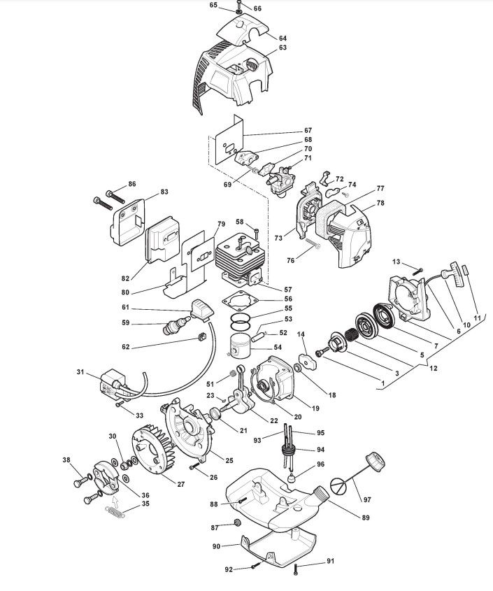 Zeichnungen von Alpina Rasentrimmer/Freischneider B 28 mit Geräte Nr. 280120000/12 ab Baujahr 2014