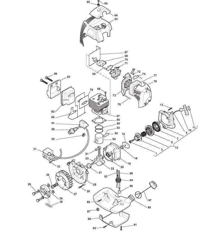 Zeichnungen von Alpina Rasentrimmer/Freischneider B 28 J mit Geräte Nr. 280120100/12 ab Baujahr 2013