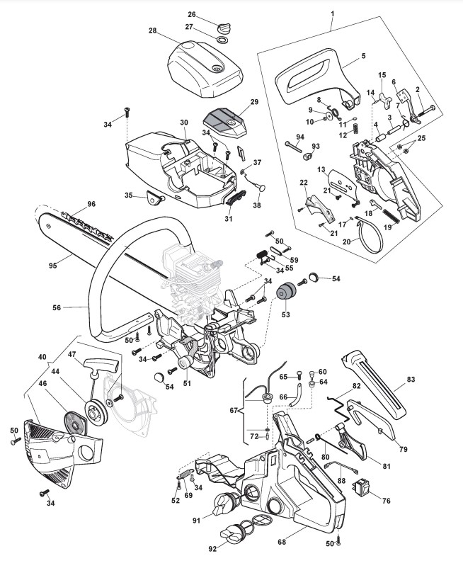 Zeichnungen von Alpina Kettensägen A 3700 mit Geräte Nr. 228114010/12P ab Baujahr 2014