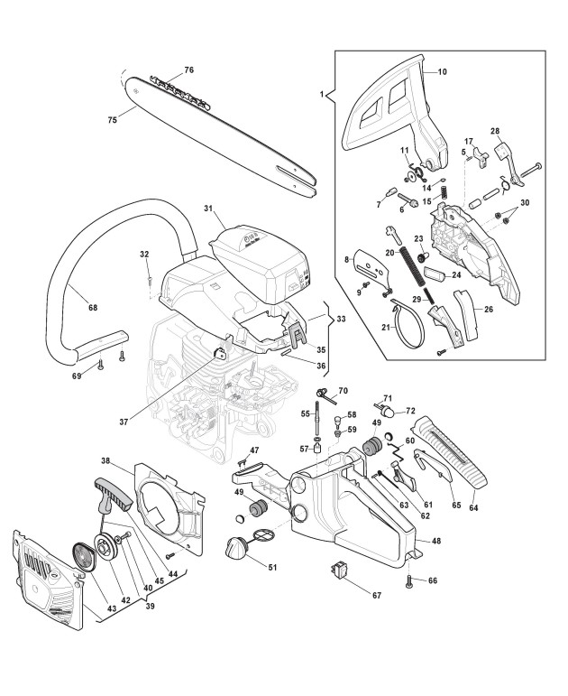 Zeichnungen von Alpina Kettensägen A 505 mit Geräte Nr. 205020000/ALP ab Baujahr 2016
