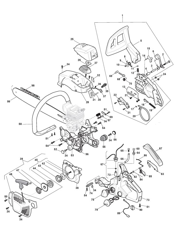 Zeichnungen von Alpina Kettensägen C 38 mit Geräte Nr. 203716000/11 ab Baujahr 2013