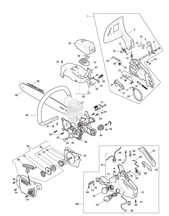 Zeichnungen von Alpina Kettensägen C 38 mit Geräte Nr. 203716000/11 ab Baujahr 2018