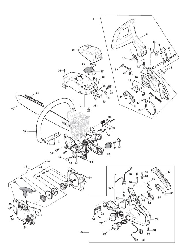 Zeichnungen von Alpina Kettensägen C 38 mit Geräte Nr. 203716000/11 ab Baujahr 2019