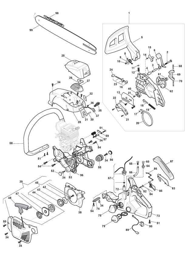 Zeichnungen von Alpina Kettensägen C 38 T mit Geräte Nr. 203714100/11 ab Baujahr 2012