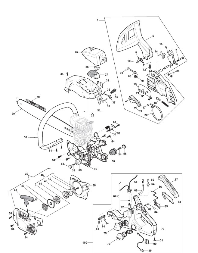 Zeichnungen von Alpina Kettensägen C 41 mit Geräte Nr. 204016000/11 ab Baujahr 2020