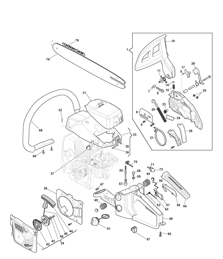 Zeichnungen von Alpina Kettensägen C 46 mit Geräte Nr. 204516000/11 ab Baujahr 2012