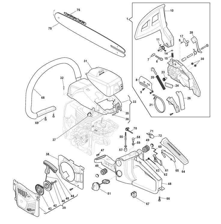 Zeichnungen von Alpina Kettensägen C 46 mit Geräte Nr. 204518000/11 ab Baujahr 2015