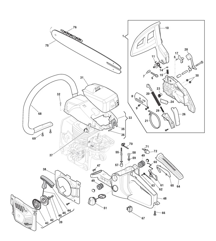 Zeichnungen von Alpina Kettensägen C 50 mit Geräte Nr. 205020000/11 ab Baujahr 2012