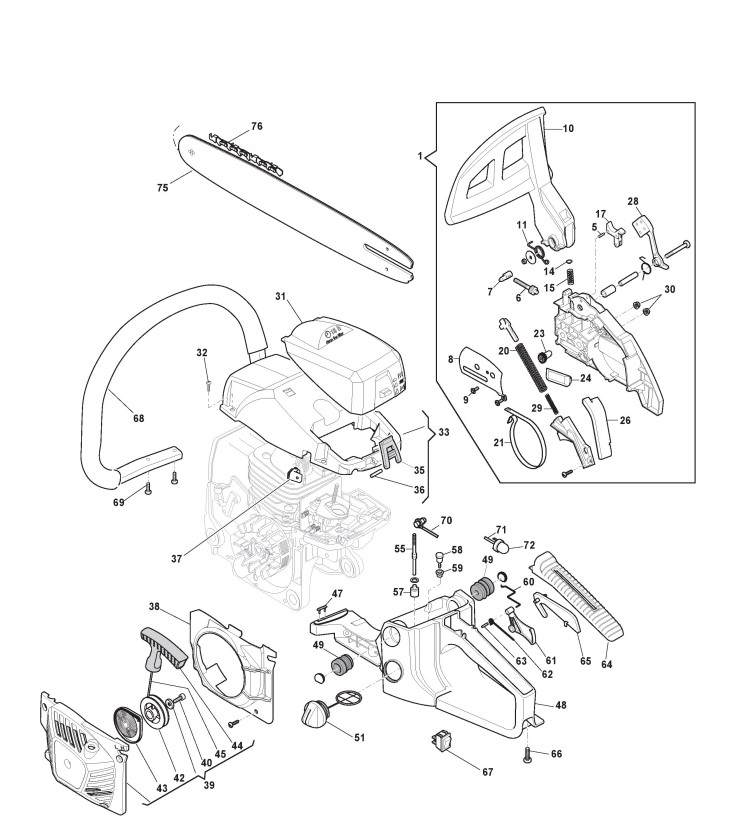 Zeichnungen von Alpina Kettensägen C 50 mit Geräte Nr. 205020000/11 ab Baujahr 2013