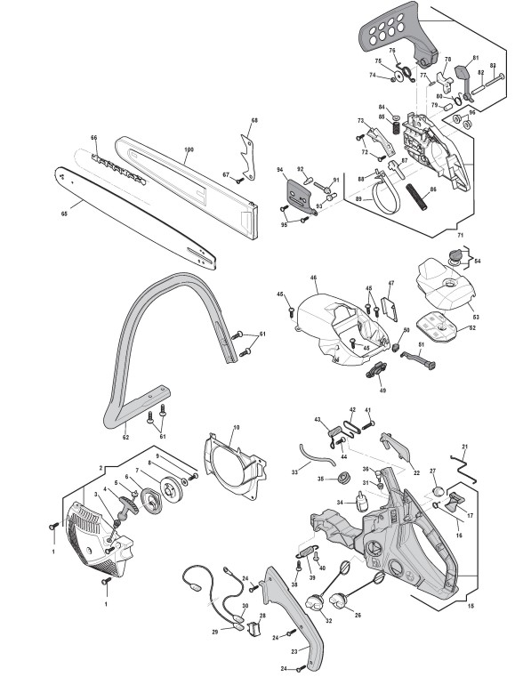 Zeichnungen von Alpina Kettensägen P 422 S mit Geräte Nr. 223716000/08 ab Baujahr 2010