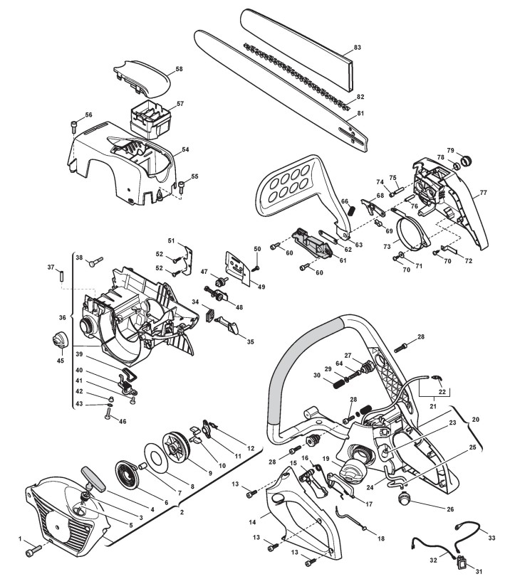 Zeichnungen von Alpina Kettensägen P 482 S mit Geräte Nr. 224018000/08 ab Baujahr 2010