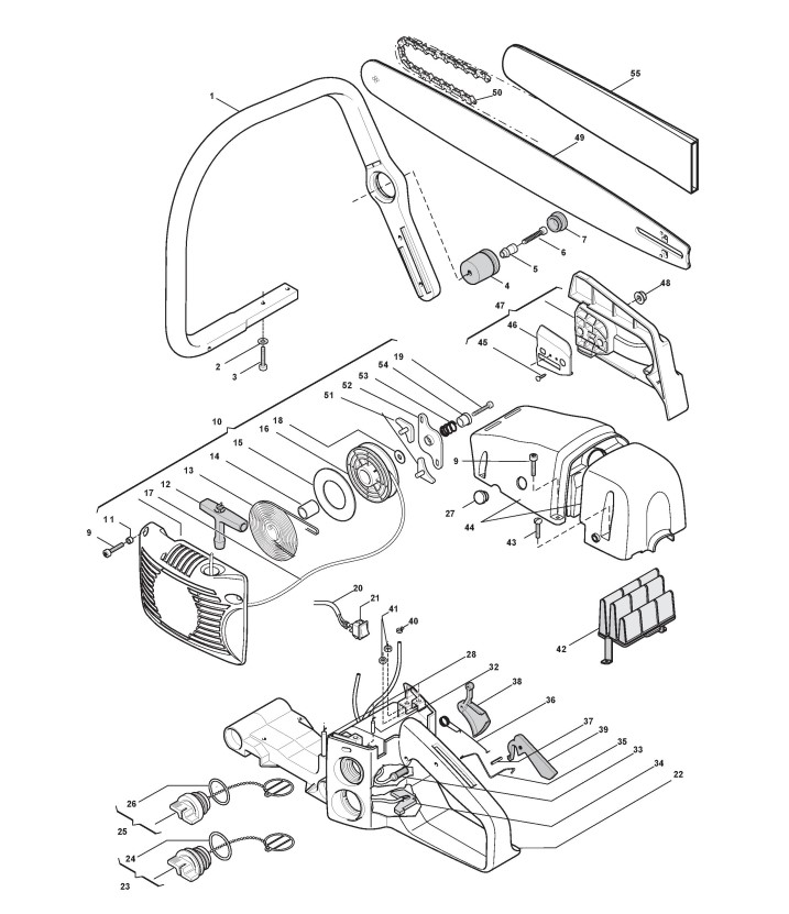 Zeichnungen von Alpina Kettensägen P 522 S mit Geräte Nr. 224320000/08 ab Baujahr 2010