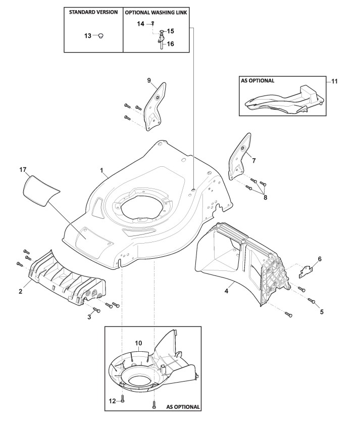 Hier finden Sie alle Ersatzteile von Castelgarden Batterierasenmäher CSL 480 SV Li (Geräte ID 295492063/19) ab 2019 aus der Zeichnung Gehäuse: