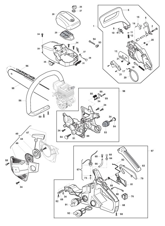 Hier finden Sie alle Ersatzteile von Castelgarden Benzin Kettensägen PS 3740 (228116013/ALP) ab 2019 aus der Zeichnung Gehäuse: