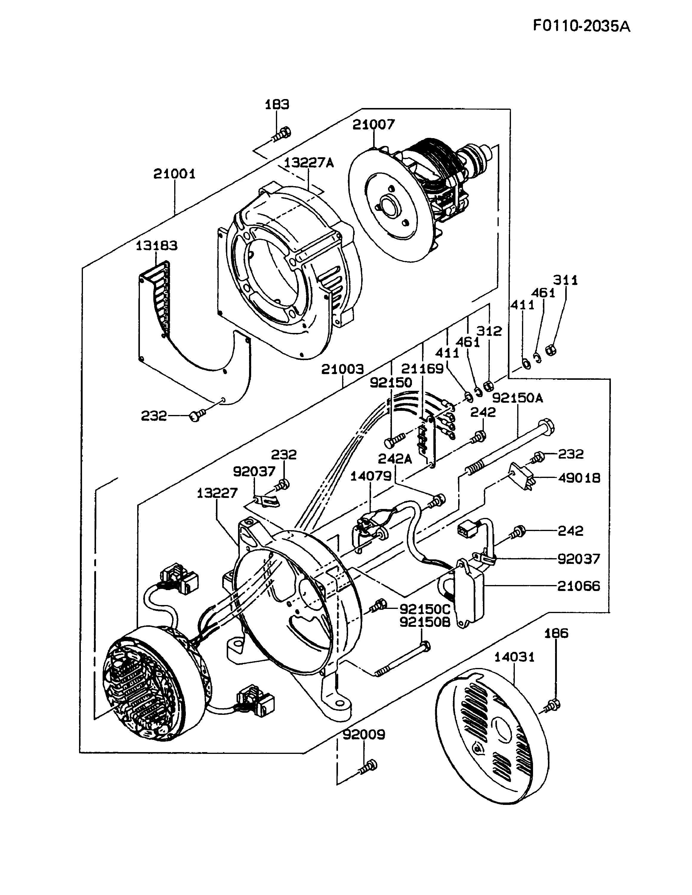 Hier finden Sie alle Ersatzteile von Kawasaki Generatoren GER50A-AA68 (GE4500A) aus der Zeichnung Generator: