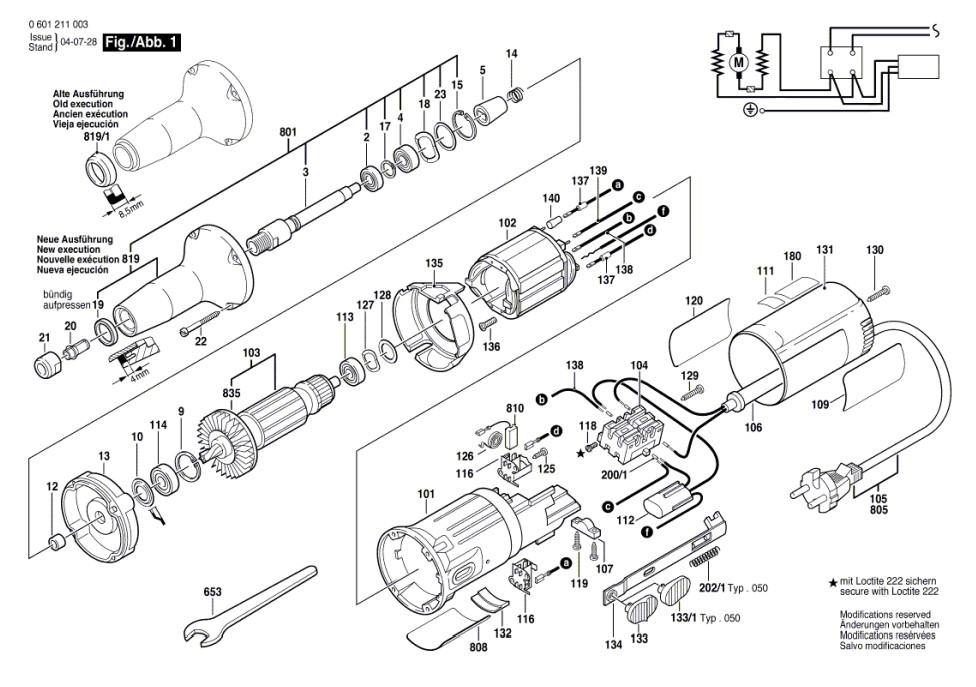 Zeichnung Bosch Geradschleifer 0 601 211 003: