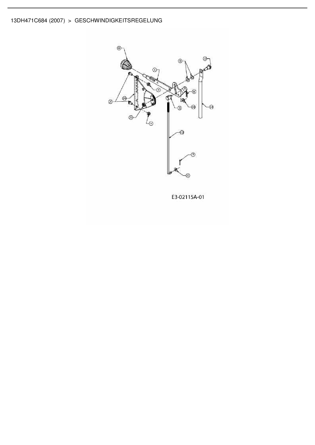 Ersatzteile für Rasentraktor Bolens T 115/30 RD aus der Zeichnung Geschwindigkeitsregelung 2: