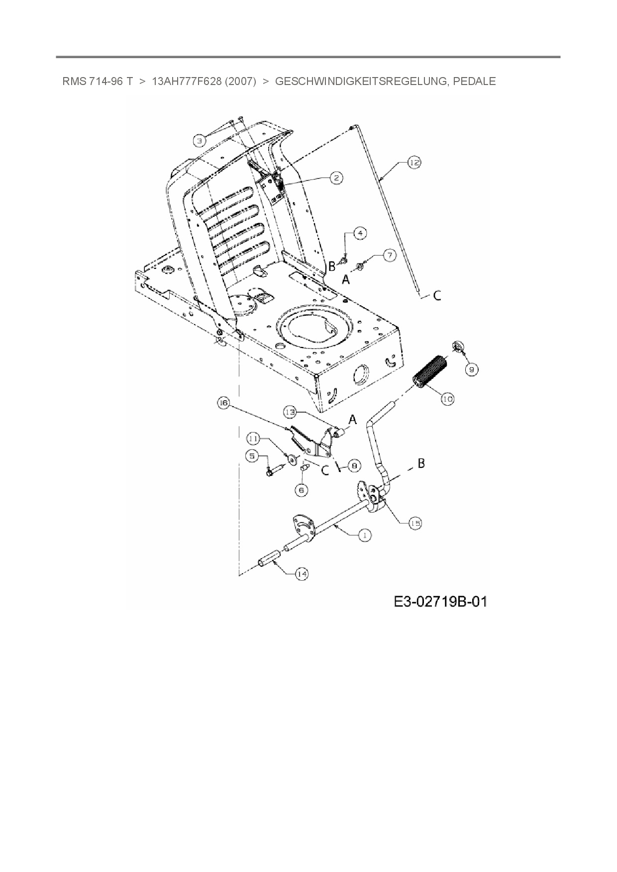 Ersatzteile für Rasentraktor Raiffeisen RMS 714-96 T aus der Zeichnung Geschwindigkeitsregelung, Pedale: