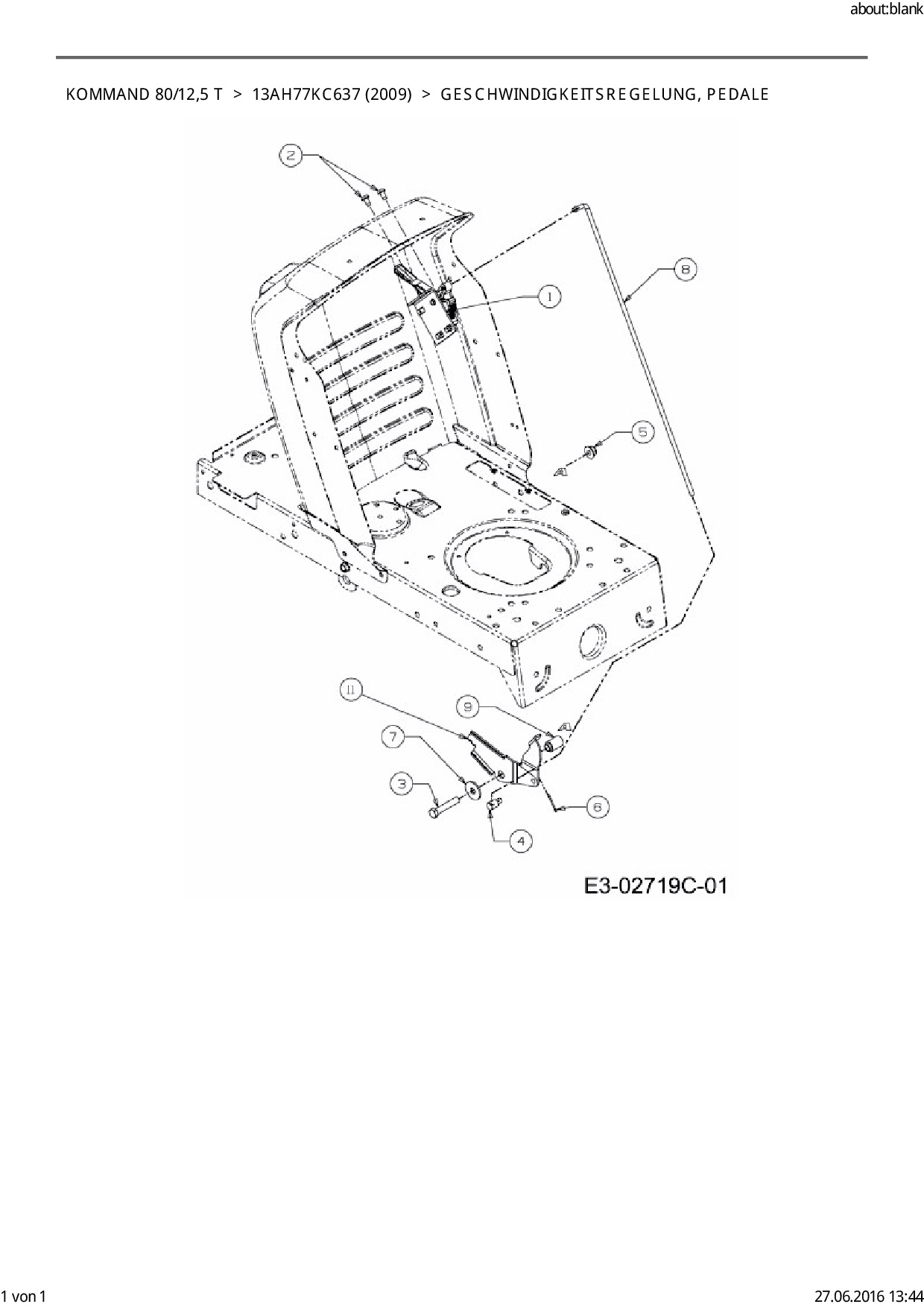 Ersatzteile für Rasentraktor EFCO Kommand 80/12,5 T aus der Zeichnung Geschwindigkeitsregelung, Pedale: